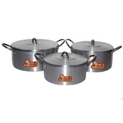 This is an advance design for efficient and power saving set of 3 pieces non-stick cookware that will give you rest of mind as it will maintain its good looks and last longer,the cookware set is constructed from heavy gauge metal known for heating quickly and evenly, reducing hot spots than can burn food. The sizes are 16cm/18cm and 20cm.