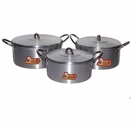 3 Piece stainless Set will be a perfect addition to your cooking utensils. It is made from quality aluminium so you are assured it will last you for a very long time. It comes in different sizes to take care of all your cooking amd serving needs. It has a nice design which is sure to make your kitchen decor look better. It has an aluminium cover that traps heat inside for efficient cooking. It comes in a set of 6 pots that will allow you cook different types of food at the same time.These Set will make cooking and serving enjoyable and convenient. Food cooked with this pot will be properly cooked for your enjoyment. You can easily wash and clean these pots after use. It is dishwasher safe so cleaning is even more convenient. No matter how frequent you cook with these pots, they will always remain rust free. It has a durable construction that will make it withstand long term use. you will have no reason to buy a replacement in a very long time. These pots can be used to cook in homes, restaurants and more.