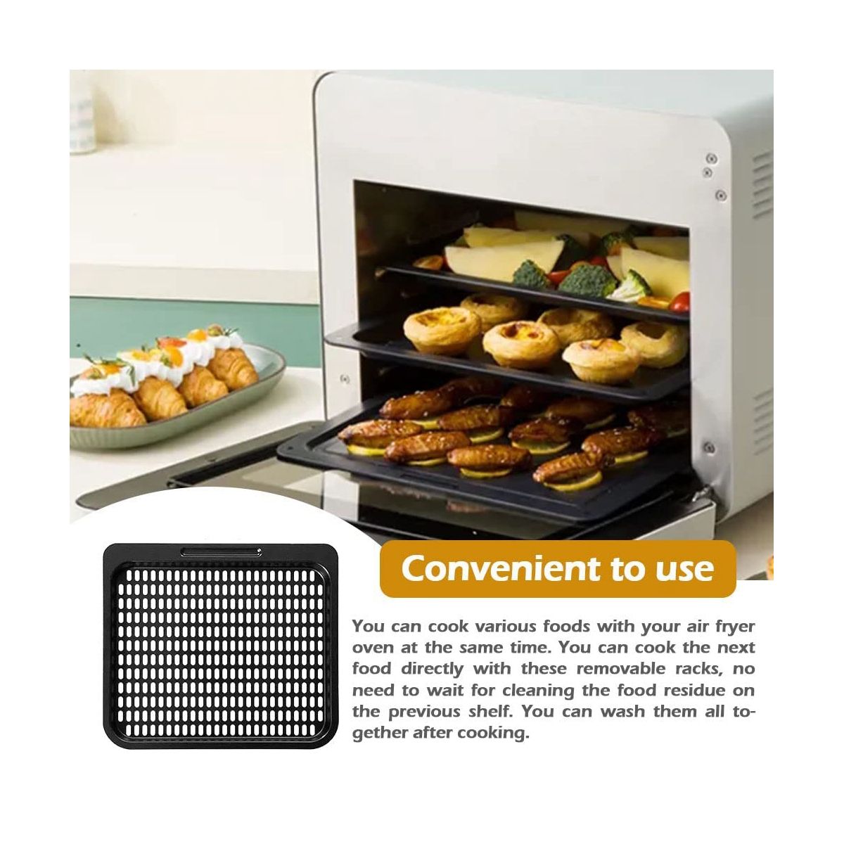 [Convenient to use]You can cook various foods with your air fryer oven at the same time. You can cook the food directly with these removable racks, no need to wait for cleaning the food residue on the previous shelf. You can wash them all together after cooking.