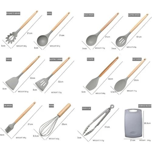 Buy Cooking Utensils - Non-stick Silicone Cookware Set With Wooden Hand - Set 19 in Nigeria