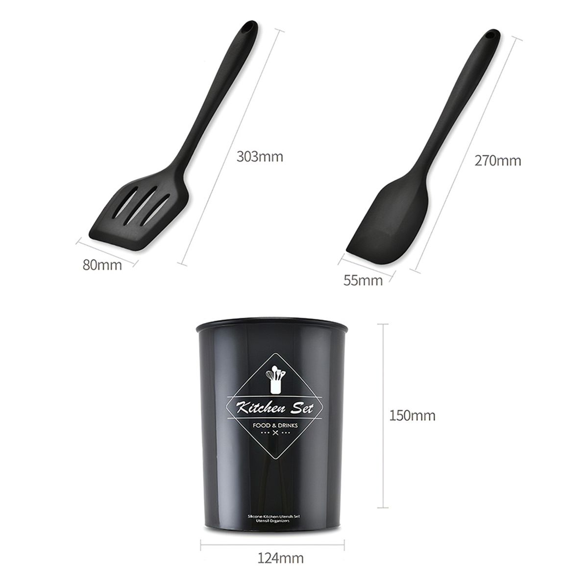【Easy to Clean amp; Store】Equipped with a utensil holder, these cooking utensil sets can be directly put into storage after use, no longer scattered and disorderly put them and easily find them before next use. What\'s more, these utensils can be directly cleaned with water.