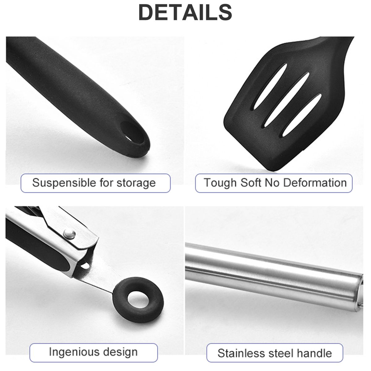 【Non-stick amp; Heat Resistance】These cooking utensil sets are non-stick, no longer worry that food will stick your cookware. All-around silicone added to the softness, also prevents your hands from being hurt during use.