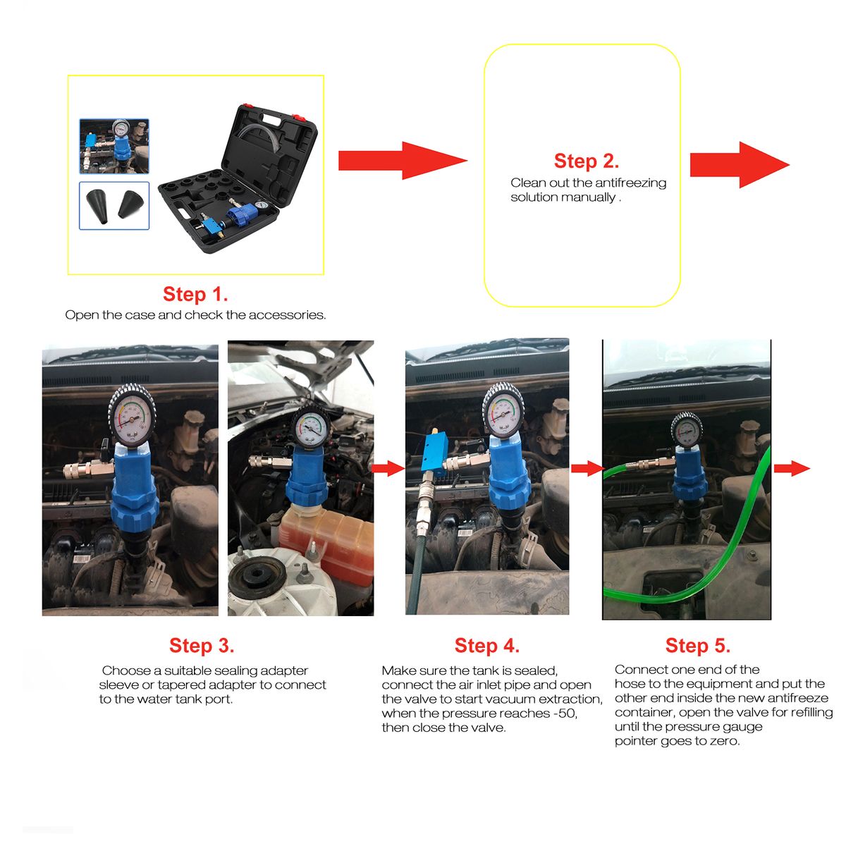 Quick Antifreeze Replacement: This kit is equipped with an EV15 vacuum generator, which has a high negative pressure value and can quickly complete the antifreeze replacement in just a few minutes, which is more efficient.