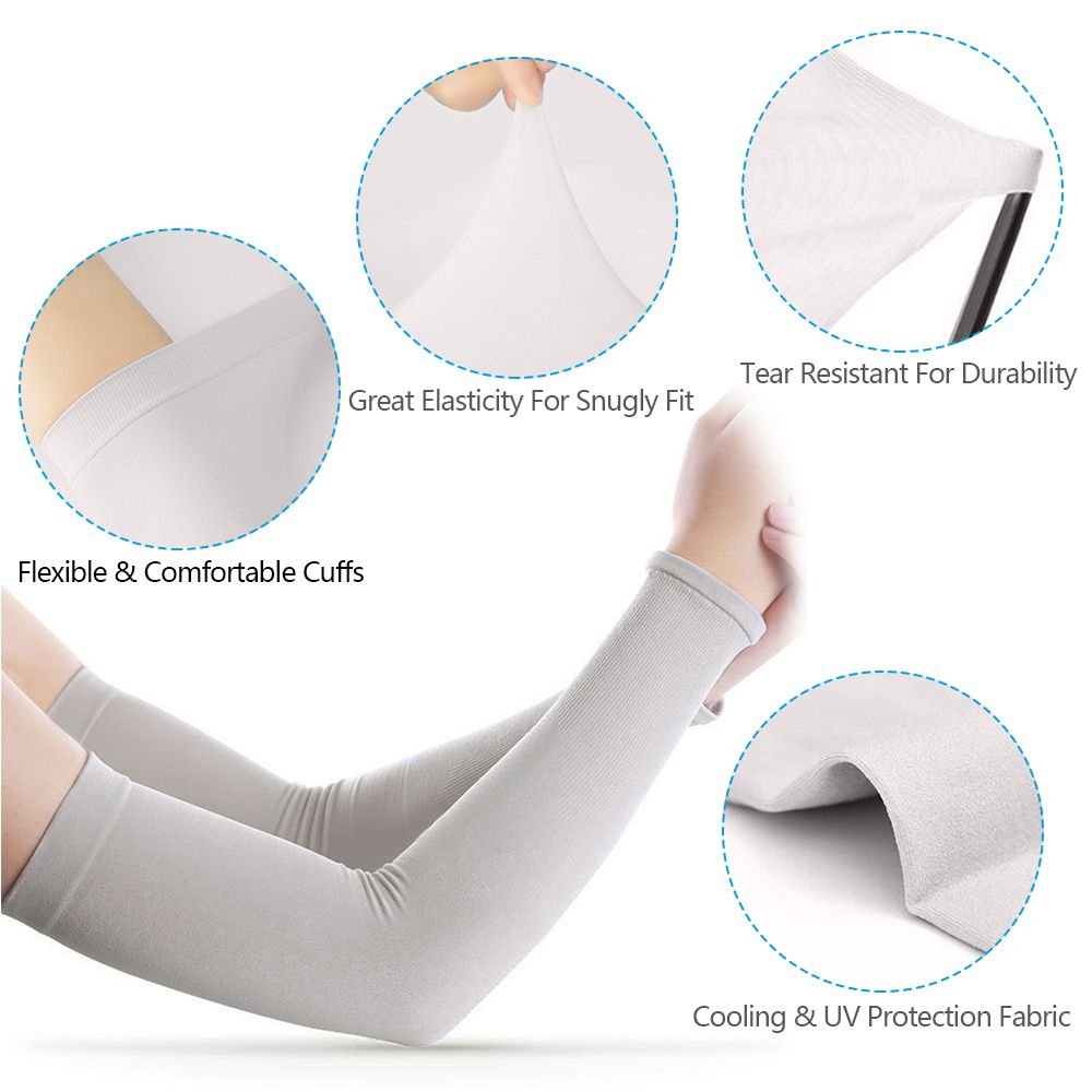 Cooling touch feeling,skin friendly fabric,absorbent and UV protective sleeves will provide you an icy wearing experience.Do not worry about blistering summer days,just go out to have fun with this cooling sleeves!