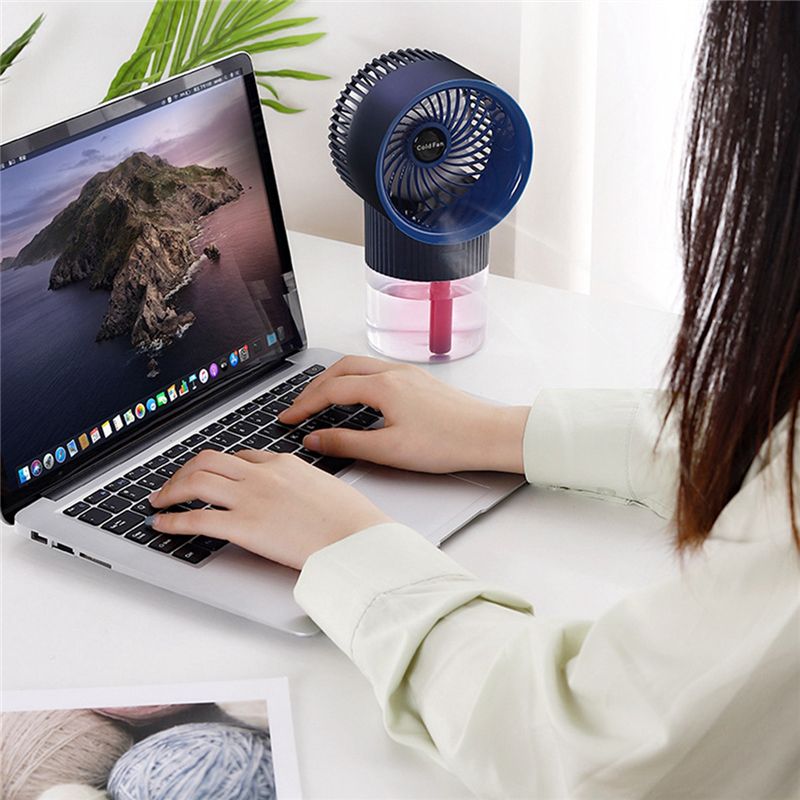 [2-in-1 fan] Strong wind, three-speed adjustable wind speed. Can be used as a spray humidifier, 350ml water tank, enjoy summer cool.