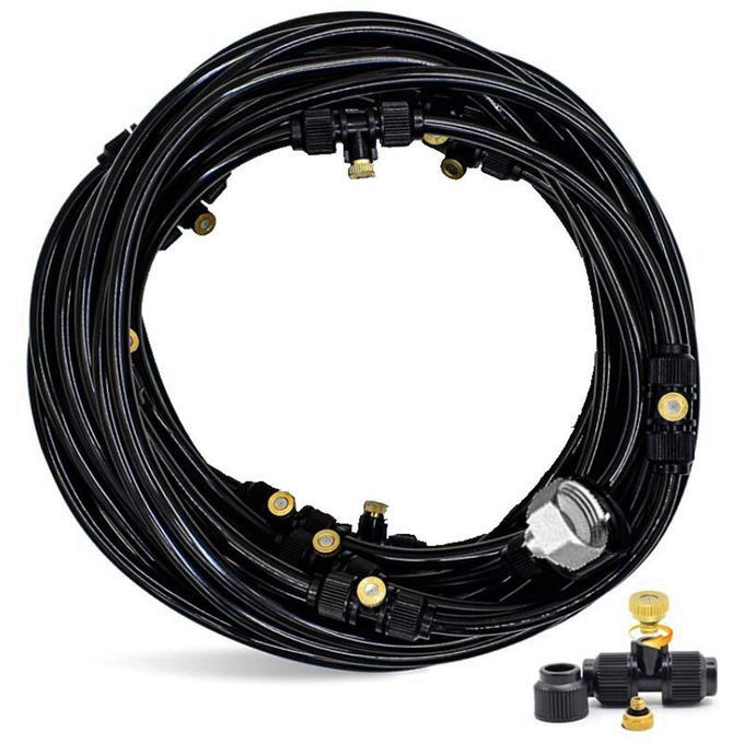 18m: 1x 3/4" Female Adapter, 1x 18m Hose, 18x Female T Connector, 19x Misting Nozzles, 1x Plug, 1x Male T Connector, 36x Cable Ties, 36x Fixed Pins, 1 Roll Tape