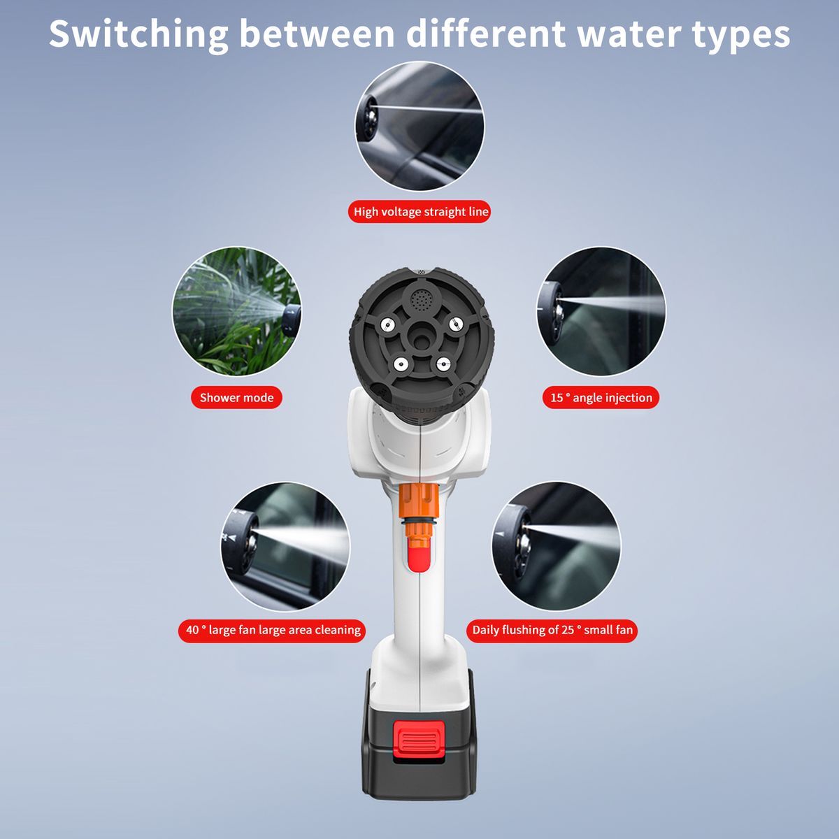Our cordless pressure washer is light weight, cordless, easy to assemble, disassemble and carry, you can use it anytime and anywhere.