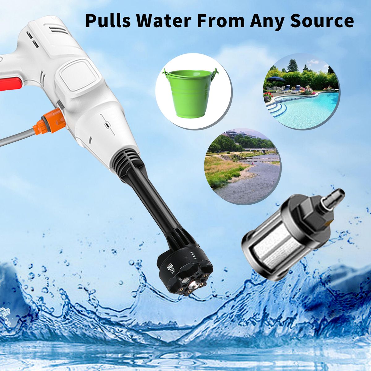 Portable self-priming, faster and stronger, built-in stainless steel fine filter, efficient and deep filtration of impurities in the water.