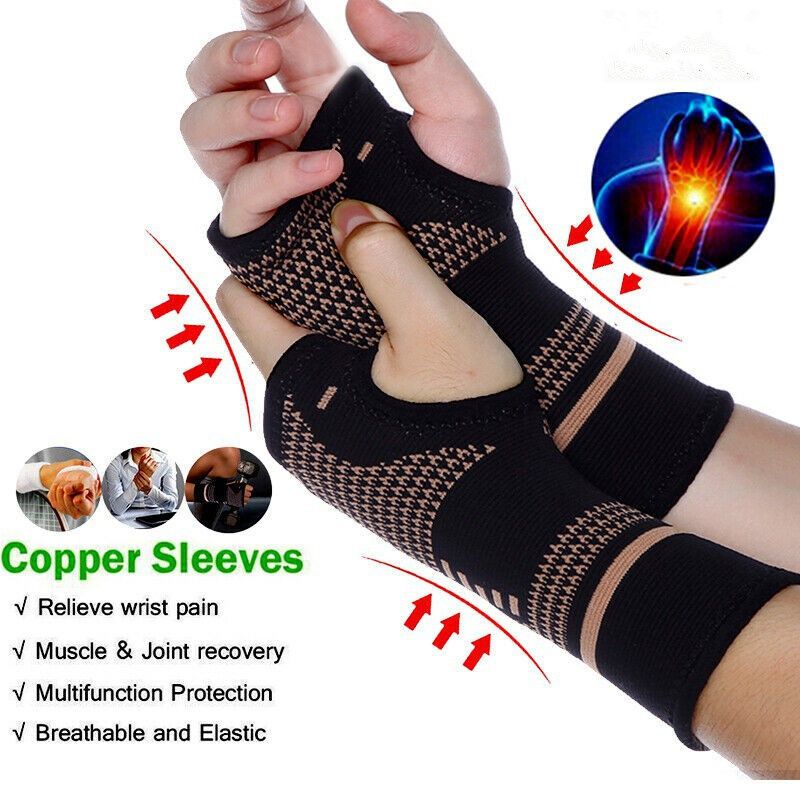1X Copper Nylon Wrist Guard Band Support Sports Pain Relief Wrap Bandage Hand Sleeve Compression Arthritis Gloves