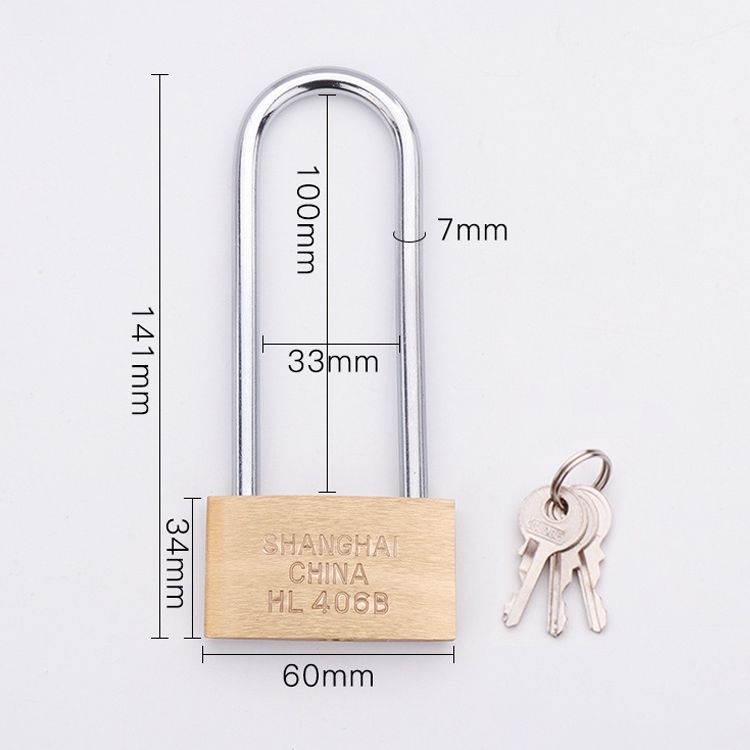 Copper Padlock Small Lock, Style: Long Lock Beam, 60mm Open
