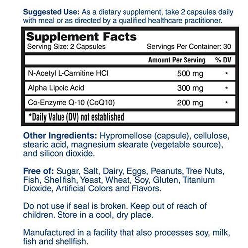 Size:60 Count - Style:CoQ10 + ALA + ALC HCL Product Description Nature's Lab CoQ10 Alpha Lipoic Acid Acetyl L-Carnitine HCL provides three key nutrients that are necessary for energy production in all cells of the body, working together to support heart and cognitive health.