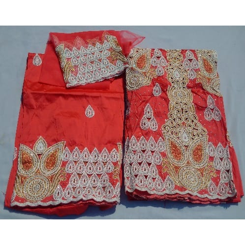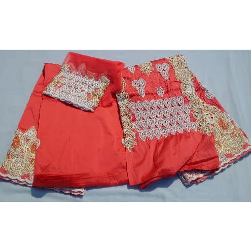 Buy Coral Peach Pre-cut Indian Lace George With Blouse - 7 Yards in Nigeria
