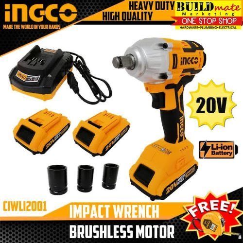 impact wrench is a practical power tool used for tightening or loosening various types of fasteners without straining your wrist. It functions by storing energy in rotating mass and then releasing it in smaller impacts. That is why this tool is irreplaceable when it comes to different construction jobs, automotive repair, and other projects that require a wrench to produce high torque output and yet allow you to work long hours with minimal exertion. Brushless MotorVoltage: 20VSquare drive: 1/2””No-load speed: 0-2300/minImpcat rate: 0-3550bpmMax.torque: 300NM20V Lithium-Ion 2.0Ah bateriesWith 2pcs batery packWith 1pc 1Hr chargerCharge Volts: 110V-240V~50/60HzIntegrated work lightLED batery power indicatorWith 3pcs sockets(17 19 21mm)Packed by canvas bag