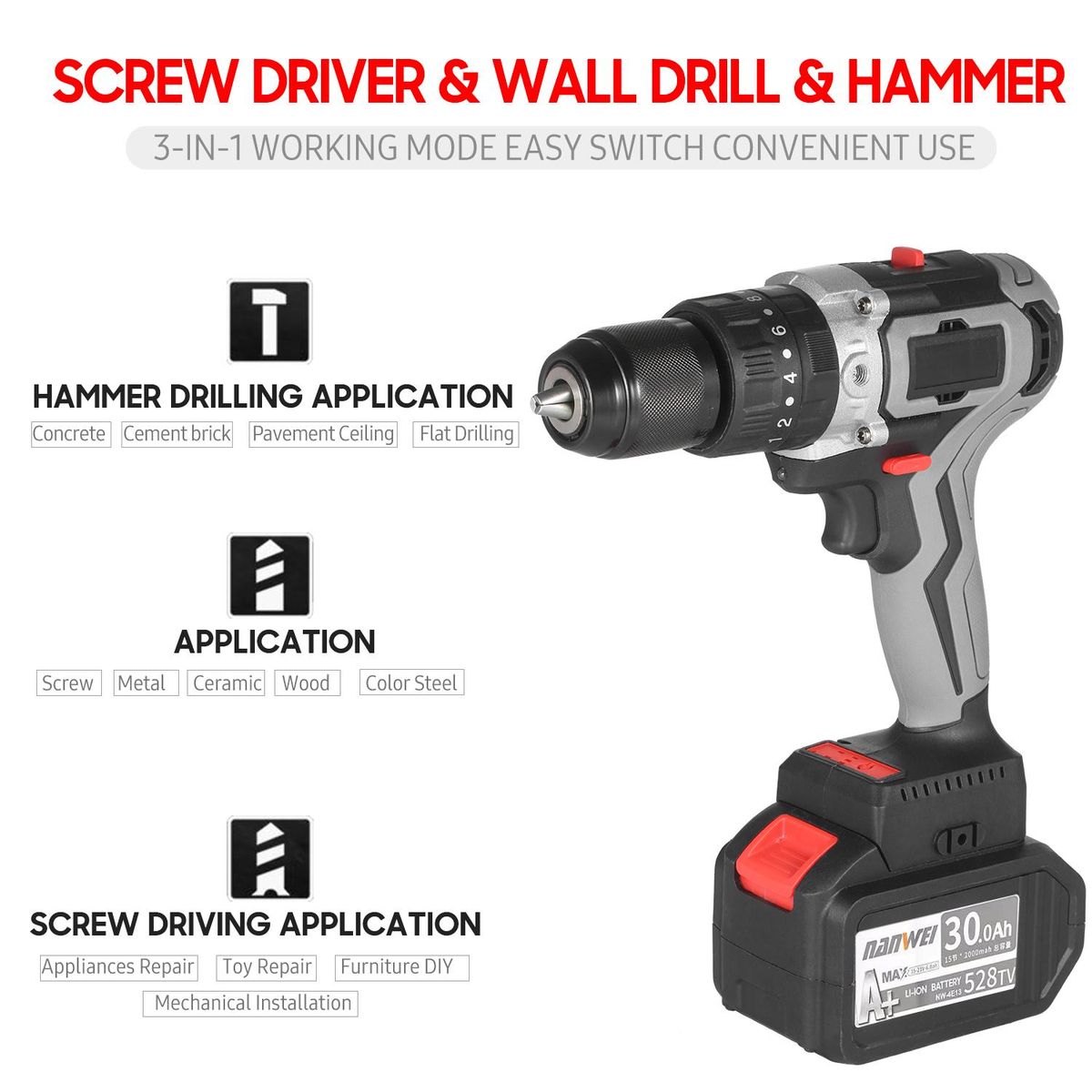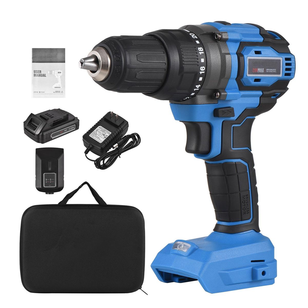 Buy Cordless Drill Driver 21V 6.0A Battery Max Torque 200N.m 1/2 Inch Metal Keyless Chuck 20+3 Position 0-1550RMP Variable Speed Impact Hammer Drill Screwdriver With Plastic Tool Box in Nigeria