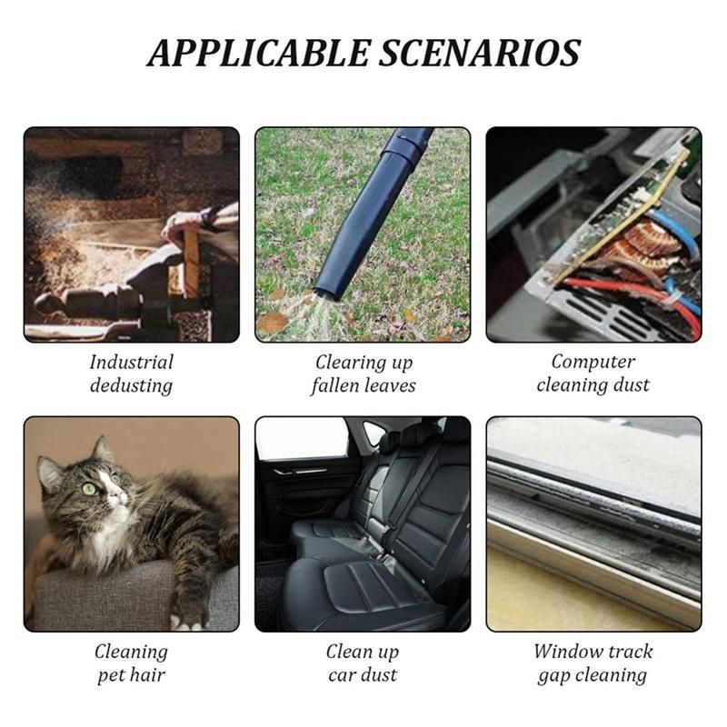 Lightweight and handheld design, easy to carry and operate. Clean out the dust of the motherboards, computer case, and power supply. clean dust/hair waste from bedding, corners, bed bottoms, carpets, furniture, etc.