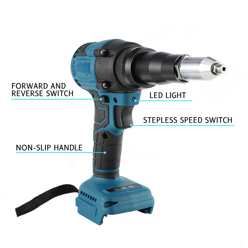 1X Cordless Electric Riveter Gun Brushless Power Tools Screwdriver 2.4-4.8mm With LED Light For Makita 18V Battery (Not Included)
