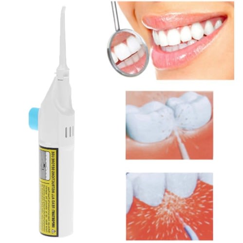 The easy way to floss every day.Just fill the base with water, point, and press the button! Air gently propels water to remove plaque-causing debris from between teeth.With a low-profile tip and ergonomic design, it's easy to reach even your back molars. Fill with mouthwash for fresher breath while you floss! Ideal for braces, bridges, crowns, and implants.With no batteries or charging required, it's easy to use and goes anywhere.