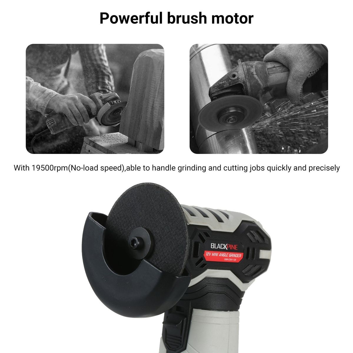 Powerful brush motor - it is equipped with a powerful brush motor that can generate 19500rpm(No-load speed), enabling you to handle tough grinding and cutting jobs quickly and precisely.