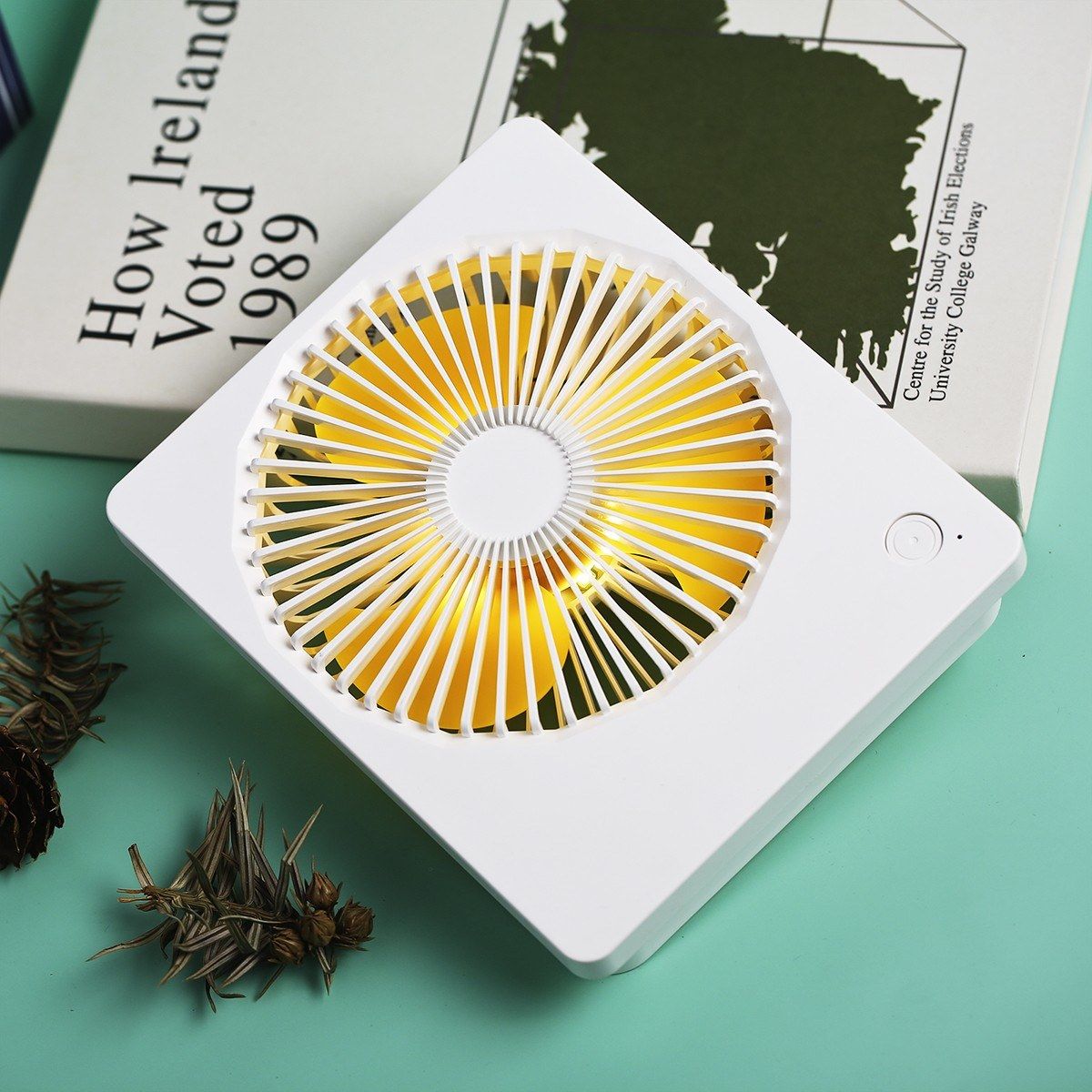 Mini Night Light Fan: with refreshing colors of milk white and orange, the light-weighted small fan designed with night light, which is perfect for using in school, dormitory, office, camping, hiking, traveling, etc.