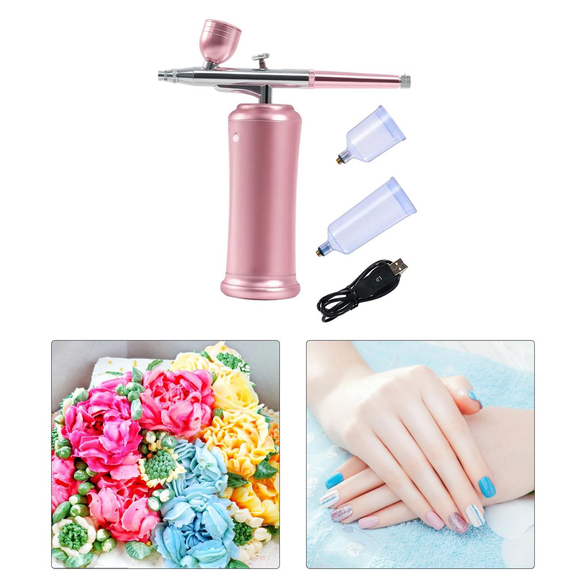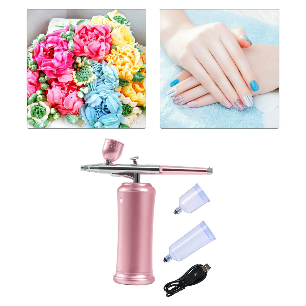 This cake coloring airbrush features wide applications, such as coloring nails, cakes, skins, etc.