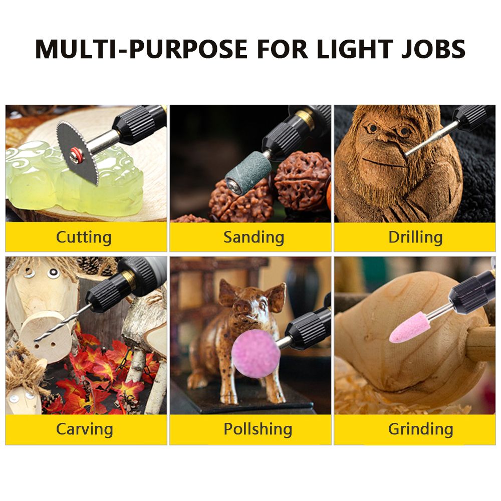 Versatile Accessories: With 24pcs accessories kit, it can be used to do all kinds of home jobs or crafting jobs, such as engraving, sanding, carving, polishing, drilling and so on.
