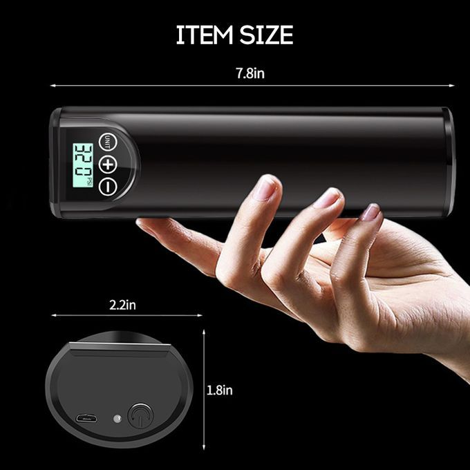 This cordless tire inflator is convenient, efficient and for pumping. With 4*500 mAh safe and portable ba-tteries, the rechargeable air inflator does not need to connect the po-wer adapter when you use it, eliminate the trouble of open the car's door in winter or rainy day.