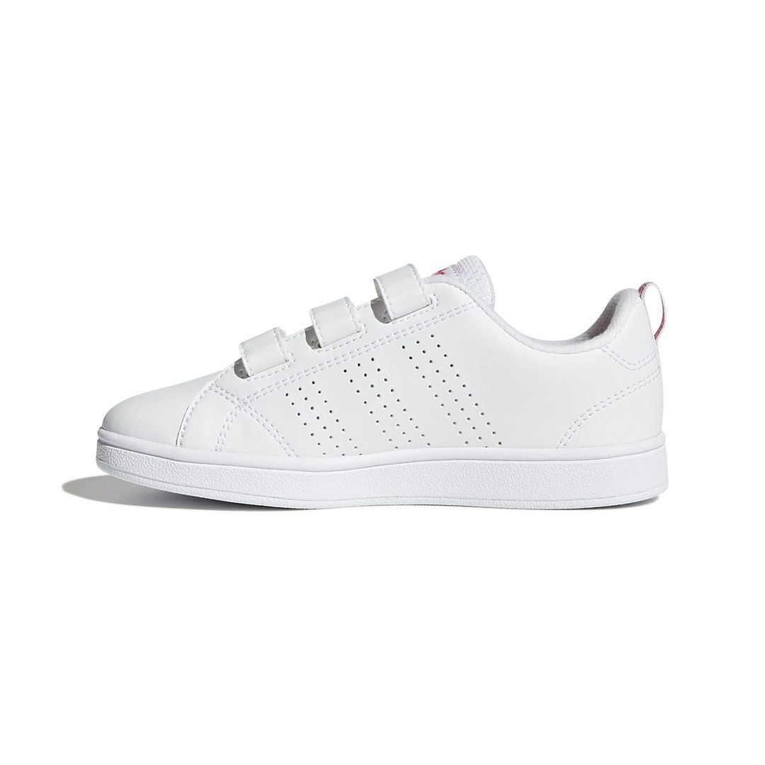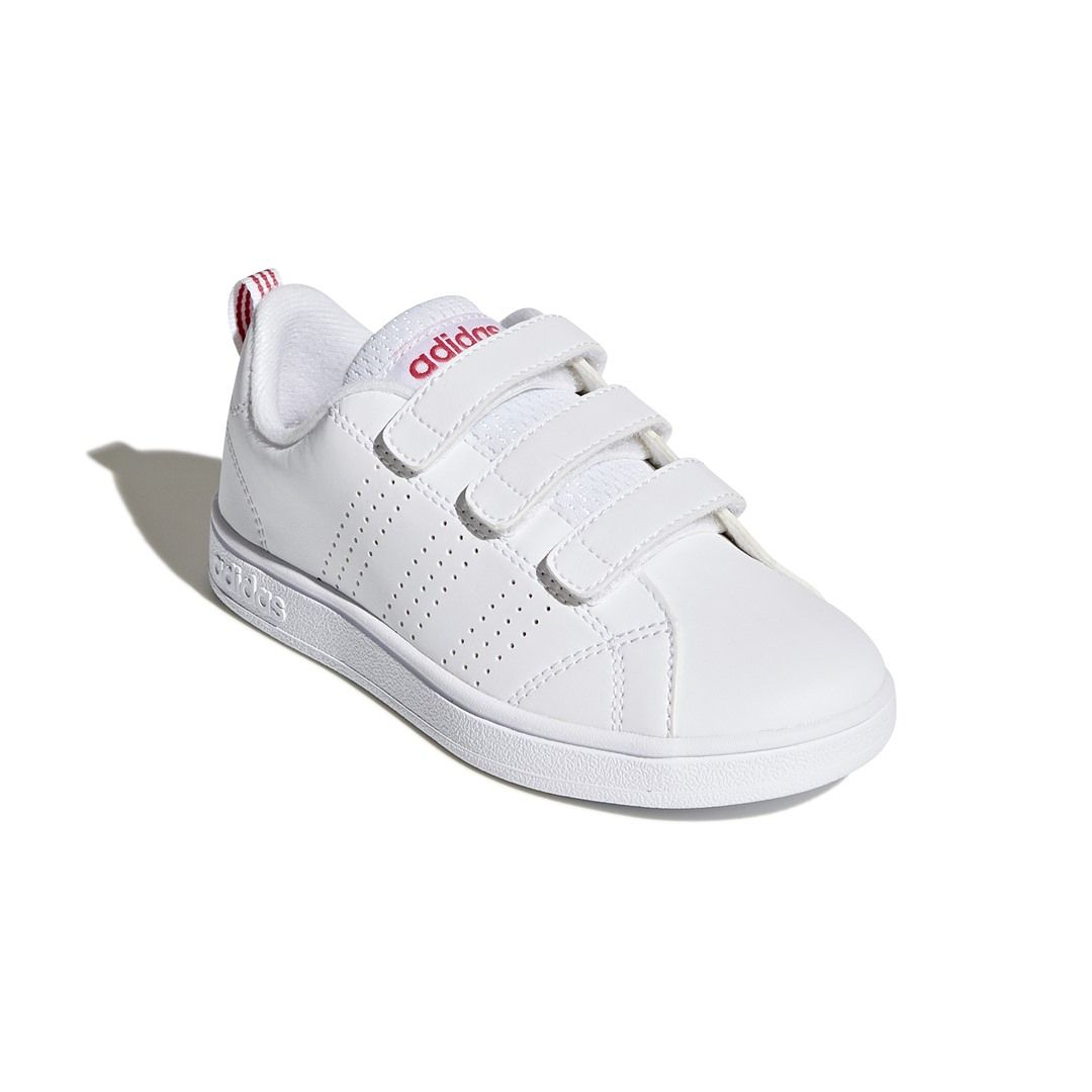 Everyday ease. These kids' shoes come in a leather-look build with subtle perforated 3-Stripes for fresh, clean style. Closure straps replace laces for easy on and off.