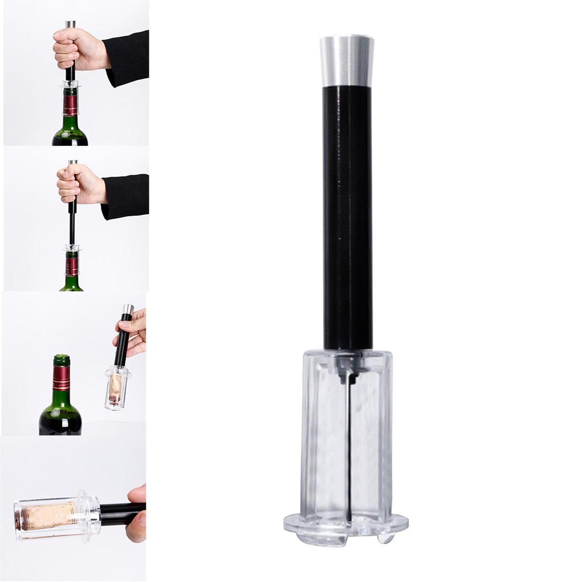 【Material】The handle of air pressure opener is made of high quality aluminium alloy with screw thread, anti slip design.