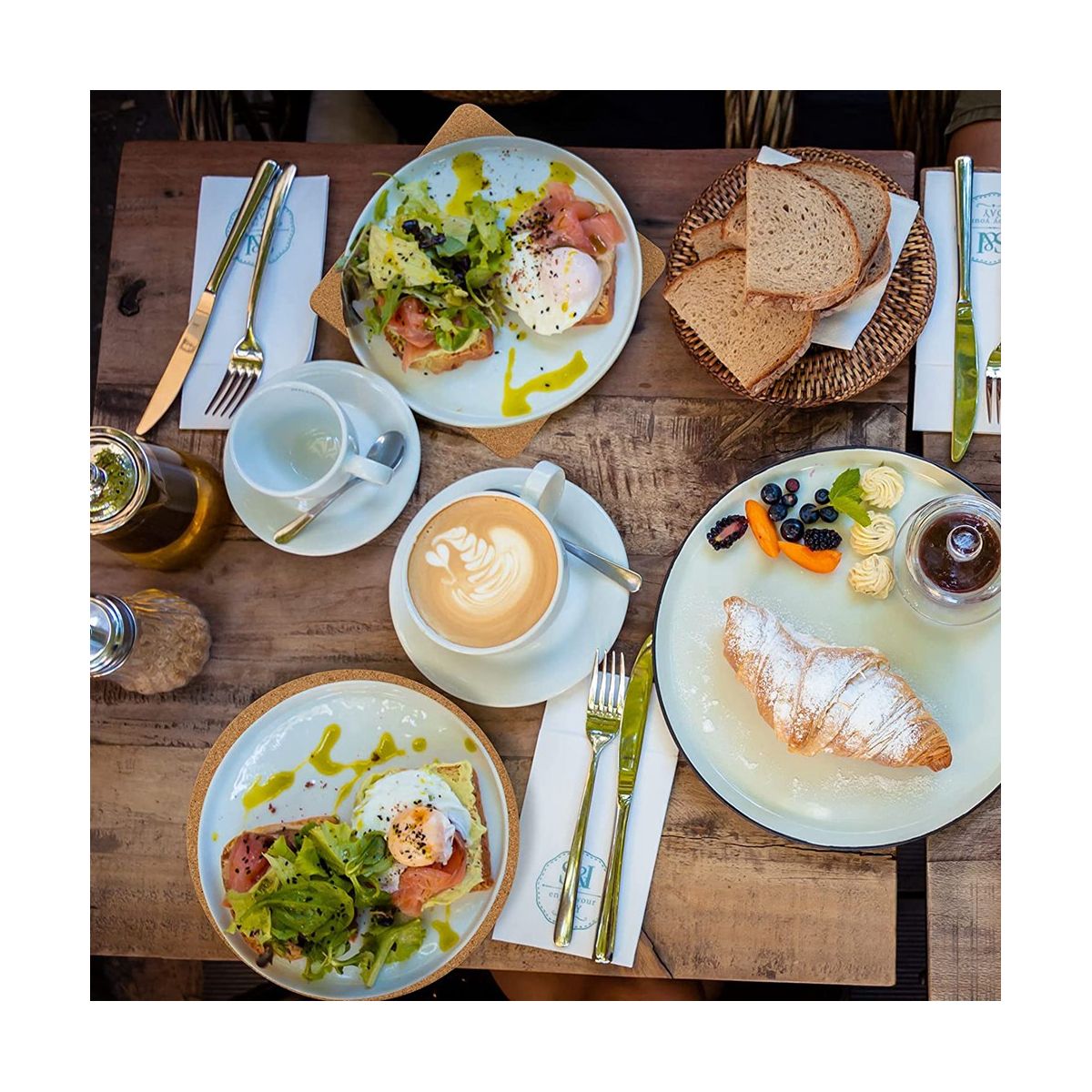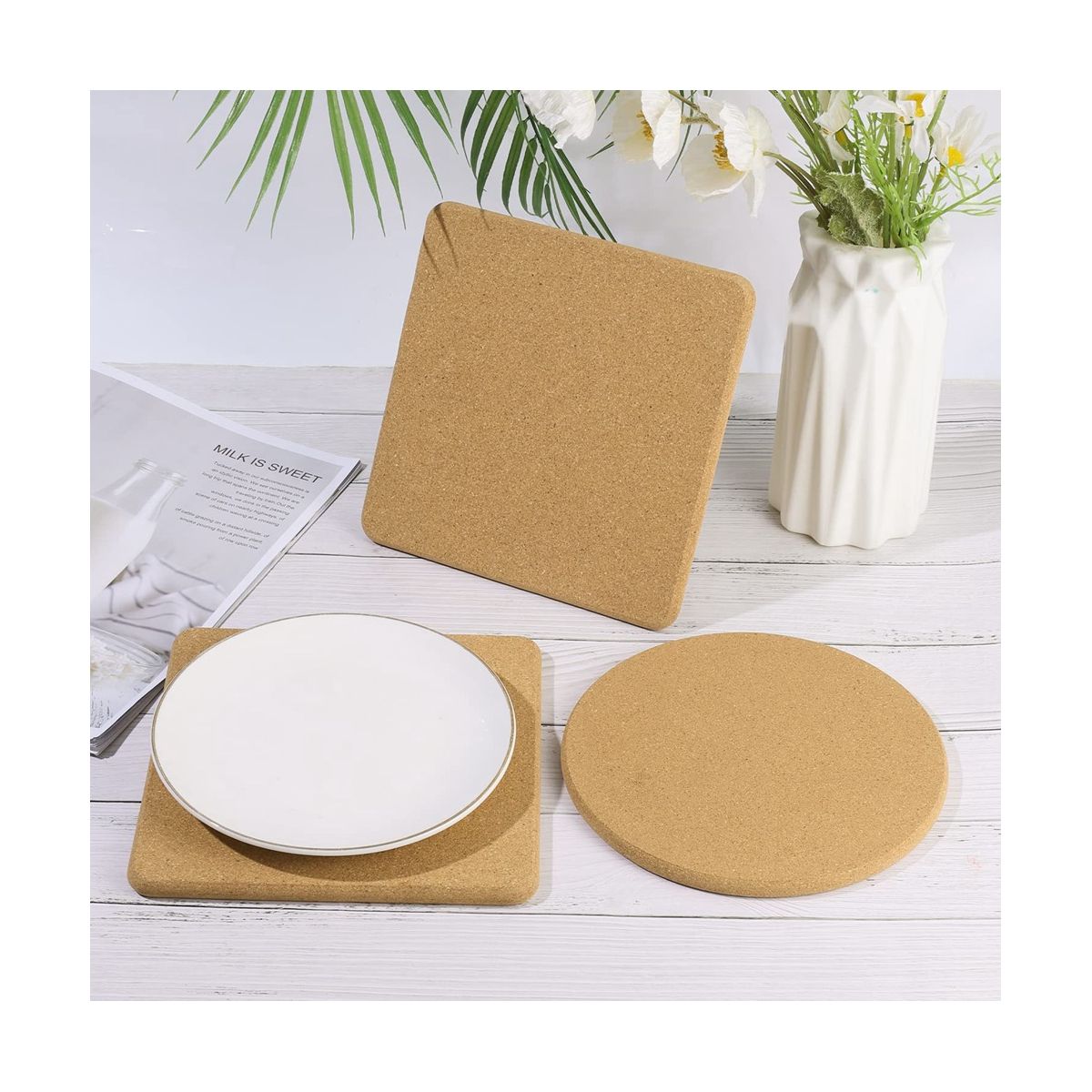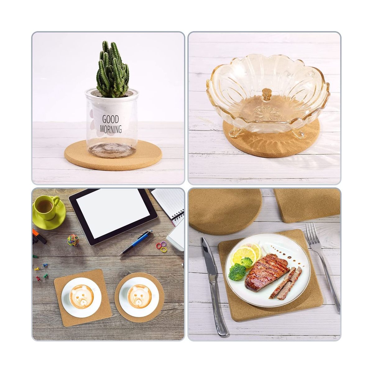 cork pads are made of high density natural cork board heat resistant and sturdy reusable and durable providing you use experience They can fit for various cold and hot food containers to prevent table top from damaged