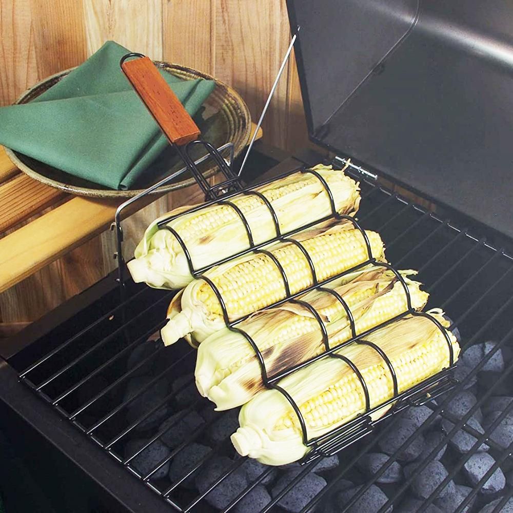 Buy Corn Grill Basket Metal Corn Holder for Grill Wooden Handle Barbecue Adjustable Corn Grilling Basket Non-stick for Outdoor Grill BBQ Tool for Corn Steak Potatoes Chops Kabob in Nigeria