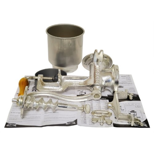 - Made of cast iron with a hygienic electroplated tin anti-corrosive coating, durable and with protective non-slip rubber to protect your surface and prevent the grain grinder from slipping during heavy work.