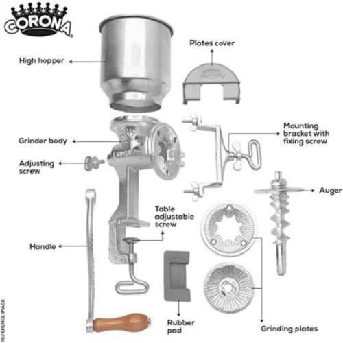 - Grind your own foods for creating healthy, homemade meals at home with Original Corona Manual food grinder. Save money by pulverizing melon seeds (egusi), ogbono, cray fish or any other dry food.The machine easily mounts to your tabletop, and the grinding plates adjust and lock into place so you can achieve the perfect grind.