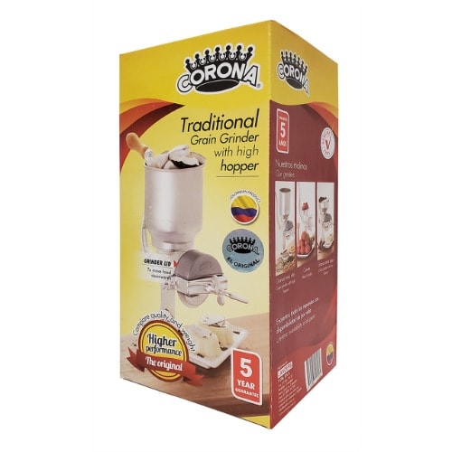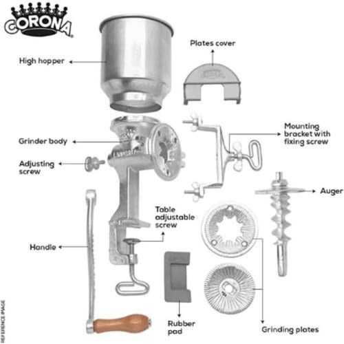 - Made of cast iron with a hygienic electroplated tin anti-corrosive coating, durable and with protective non-slip rubber to protect your surface and prevent the grain grinder from slipping during heavy work.