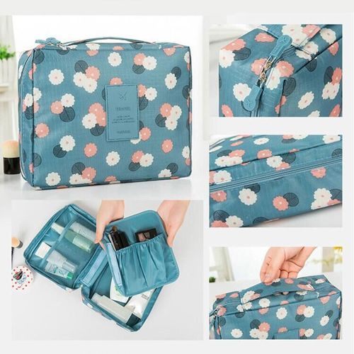 Specification:Healthy, ecologicalMaterial: OxfordColor: blue flowerSize: 21x16.5x7cmNet weight: 80gUsage: cosmetic and skin care storage, travel bag