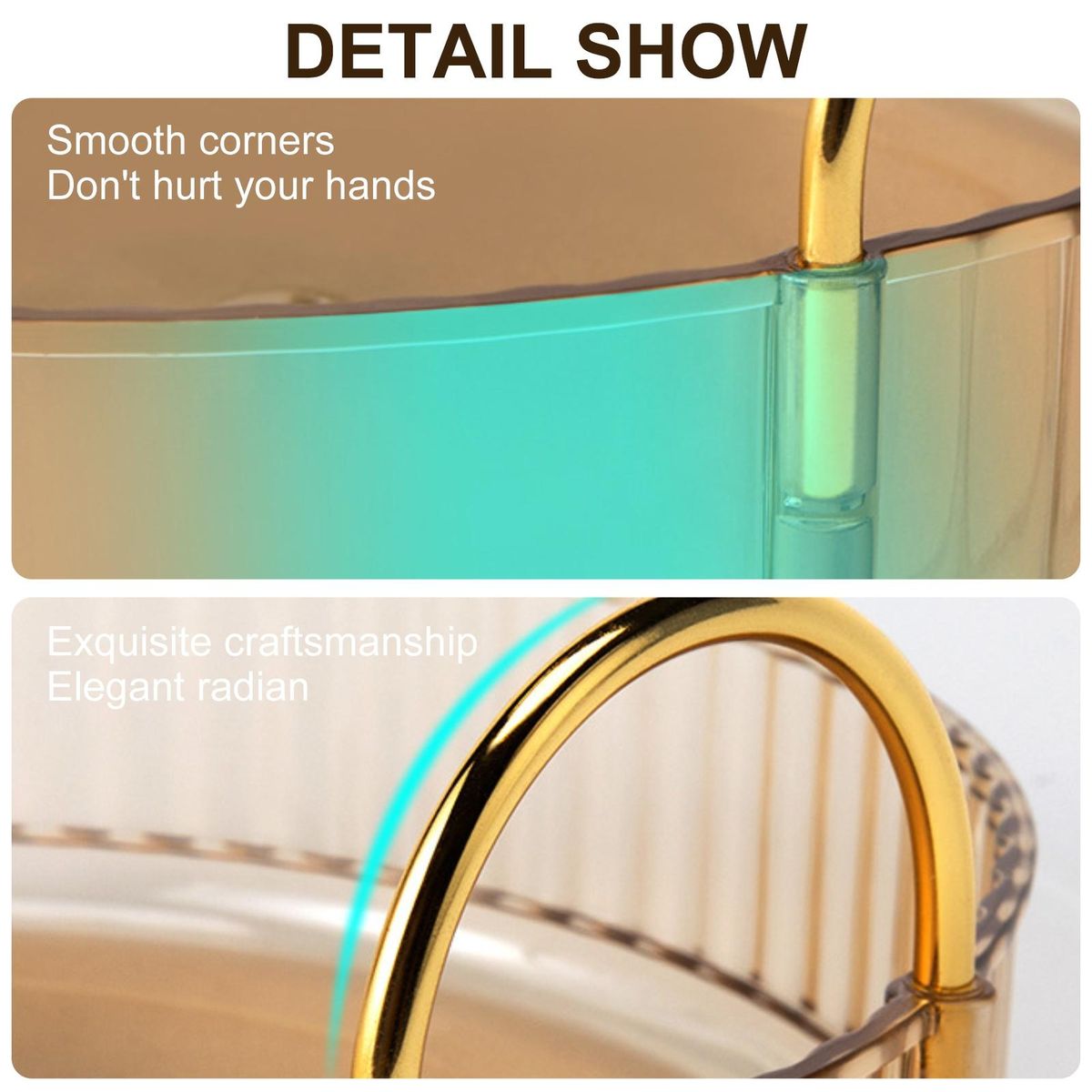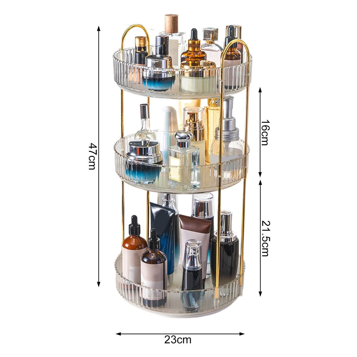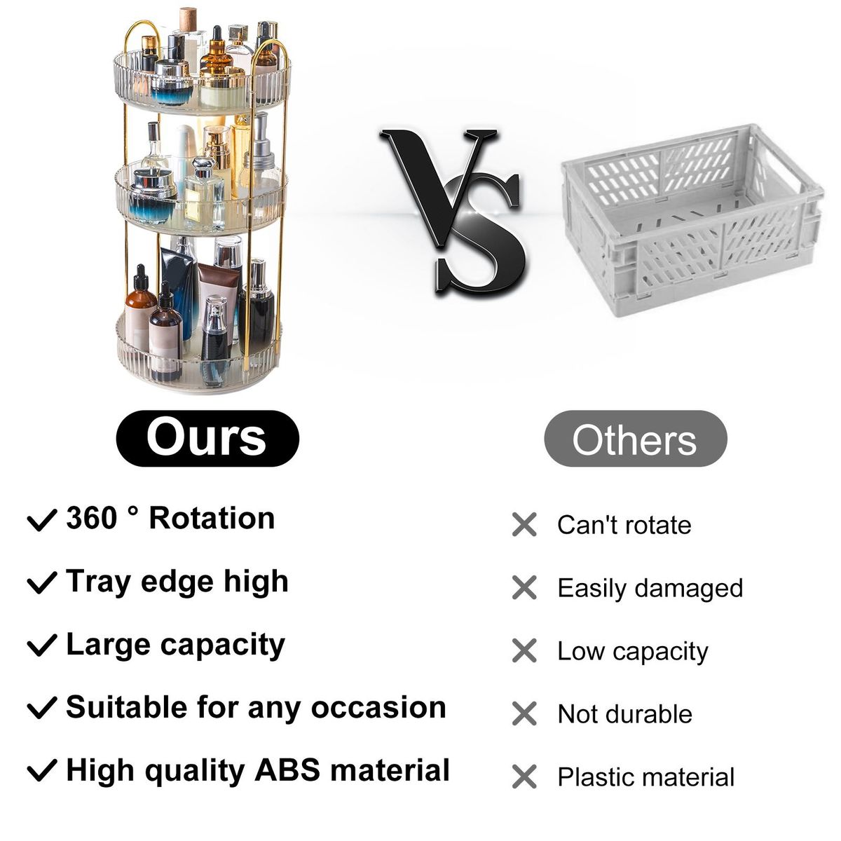 360-degree easy rotation can bring you a more convenient experience. The rotating base is smooth, and the tray edge is high enough to prevent cosmetics from falling when rotating. You can also use it as a fantastic present.
