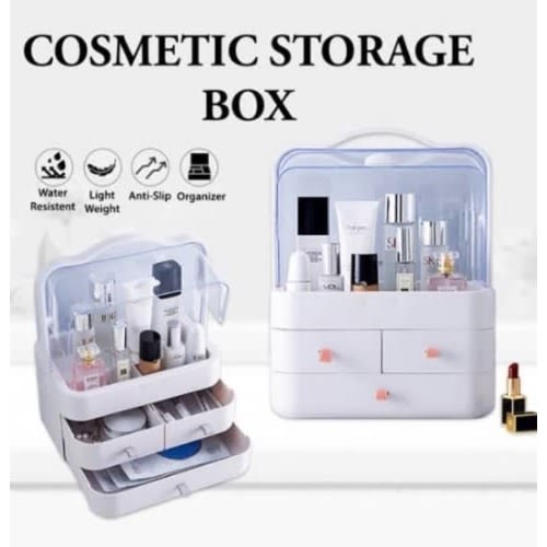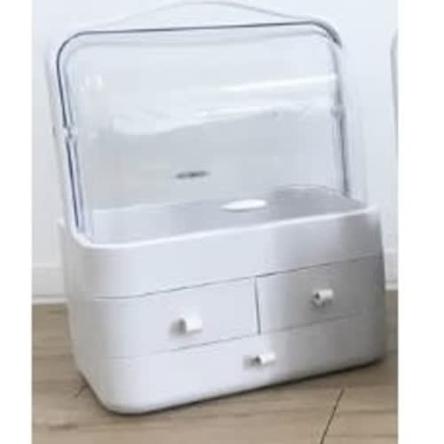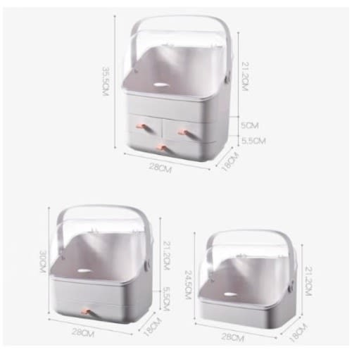 Say Goodbye to Your Messy Vanity Table!This makeup organizer is the perfect combination of function and style. It is large and dustproof, and you can instantly access the specific item you need at all times.This cosmetic organizer can be used to neatly store different sized skincare products and cosmetics.It & rsquo;s Well Built !This large makeup organizer features a fully open lid with sturdy handheld. It is hassle free to put in or take out the cosmetics while keeping them away from dust and water.The portable handheld handle allows you easily take it from room to room if needed. The drawers are perfect for storing lipsticks, foundations, bronzers, blushes, eye shadows, primers, powders, and much more.Perfect for Any OccasionNeatly arrange all your makeup just the way you like, and simply open the lid to get the beauty products while applying makeup. Large Makeup Organizer is multifunctional and a beautiful gift fit for any occasion.Birthdays, holidays, or maybe just because it's Tuesday? No matter for whom or when or why you can be assured that this elegant organizer will go over well.Package Content:1 x Dust & Water Free Makeup Organizer