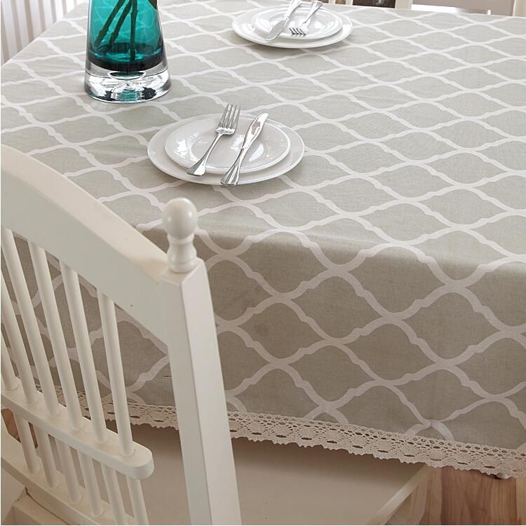 Cotton and Geometric Rhombus Gray LaceTablecloth