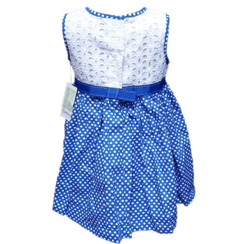 It Features:Cotton eyelet Bodice to Ribbon Sash Banded Waistline for Perfect fit & Polka Dot Skirt