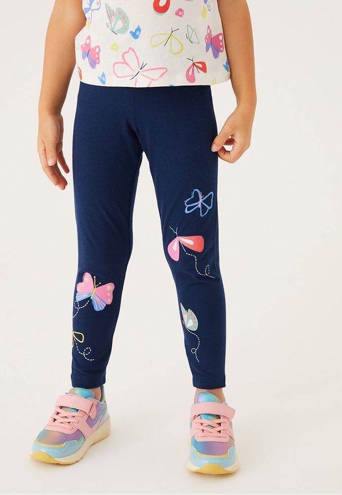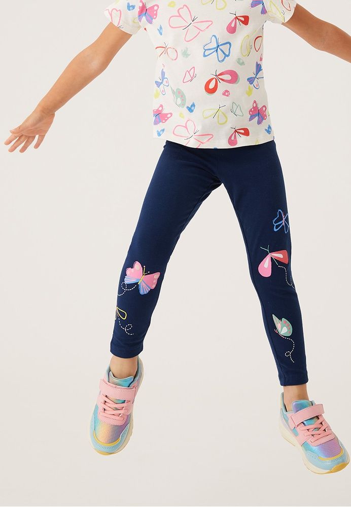 These printed cotton-rich leggings might just become their favourite pair. They're designed in a regular pull-on shape, with added stretch and an elasticated waist for their best fit. A butterfly print adds a burst of colour. All of the cotton for our clothing is sustainably sourced and always will be.