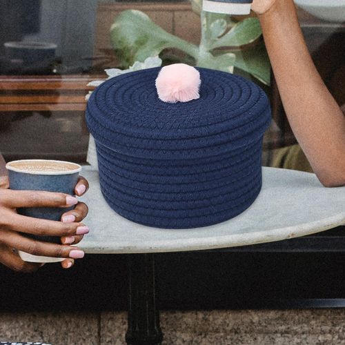 Handwoven Storage Basket;Cotton Rope Woven Storage Basket Tabletop;Handwoven Cotton Thread Basket Toy Oragnizer;Storage Basket Bedroom Living Room Office;Sundries Organizer Hamper Foldable Woven;Picnic Basket Storage Woven Cotton Thread