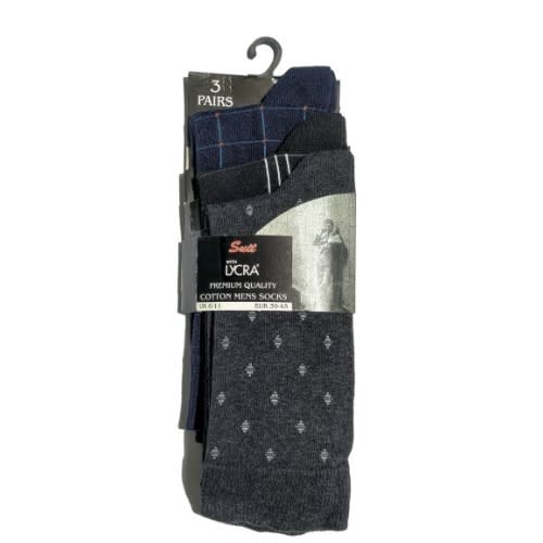 3-in-1 Droplet Men's cotton socks are premium quality socks. The socks are made of cotton which absorbs sweat and keep the feet dry and fresh all day. This eliminates bacterial growth that causes foul smelling feet and shoes. The socks do not fray or loose their shape.