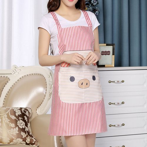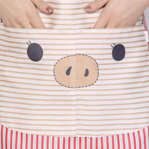 Cotton Yarn Cartoon Pig Kitchen Anti-dirty Strap Apron(Red)