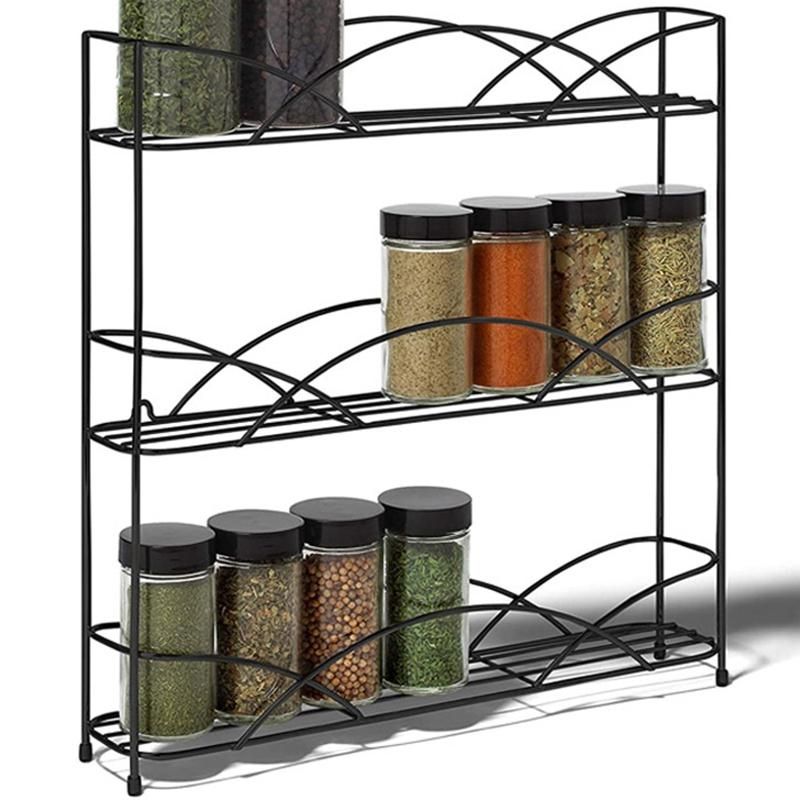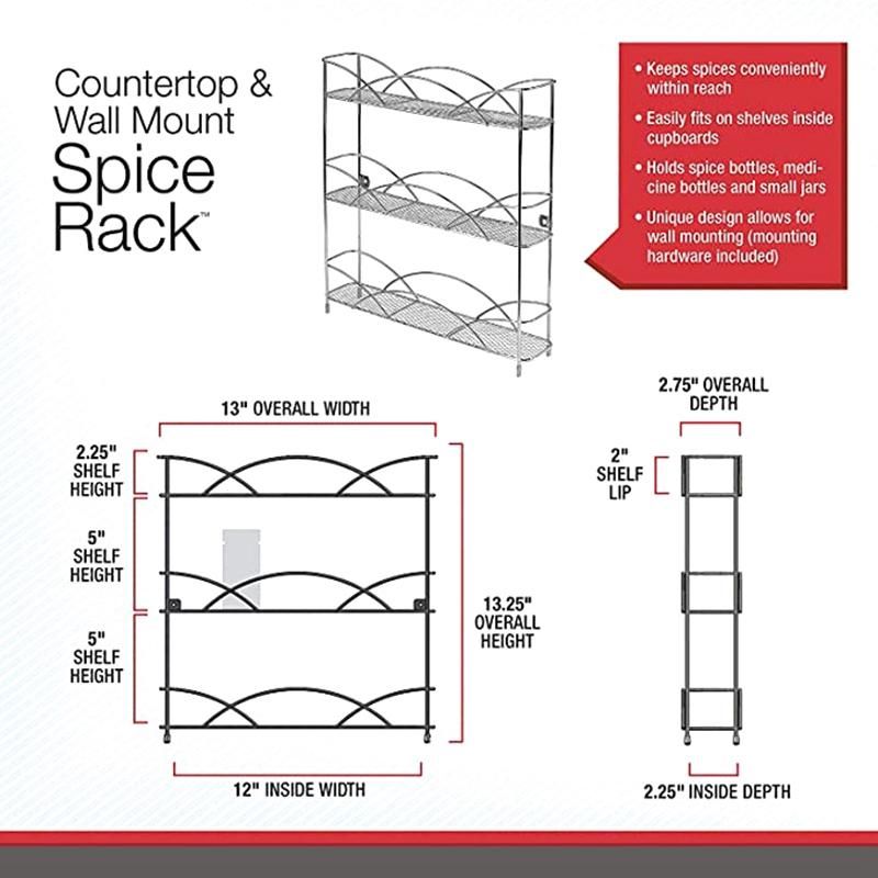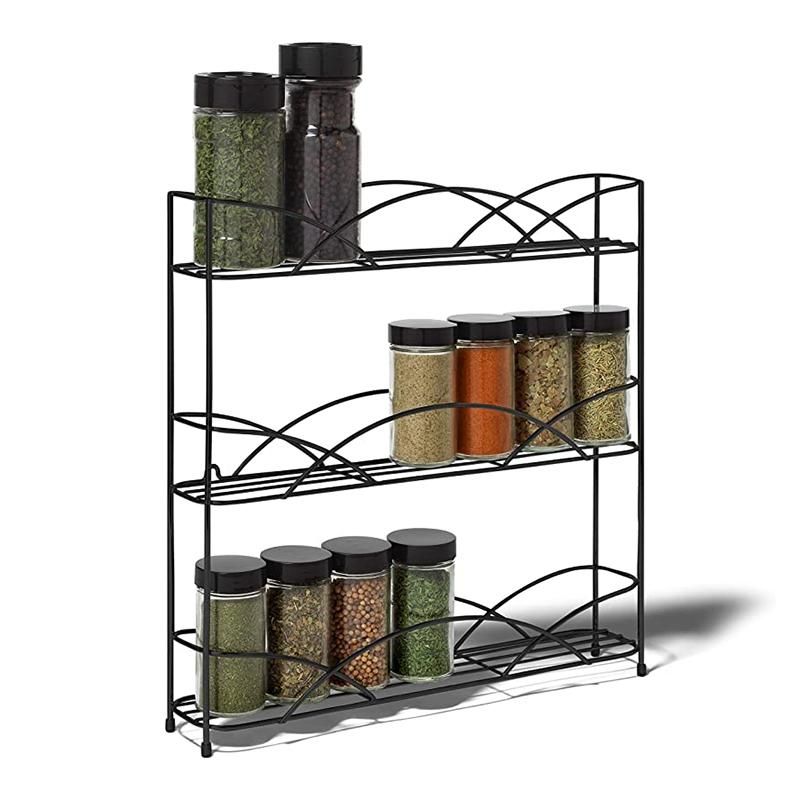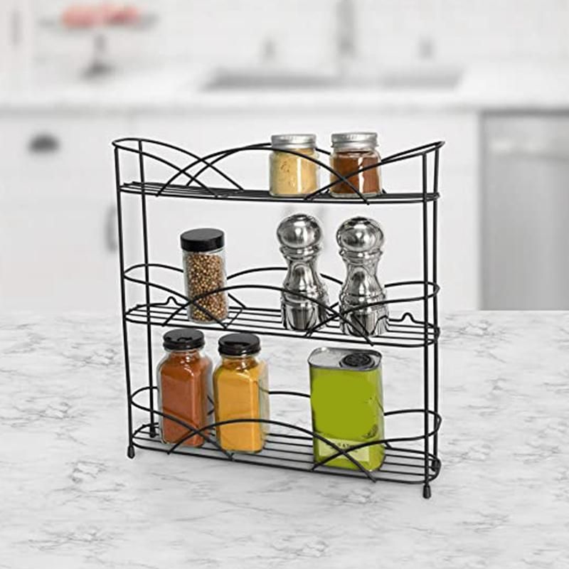 Countertop 3-Tier Rack Kitchen CabinetSimple, minimalist design complements a variety of modern design schemes. The gently curved barriers add a bit of softness to the streamlined, contemporary design. Finished in a variety of stylish colors, this wire spice rack will organize your kitchen, pantry, bathroom, or closet in style.
