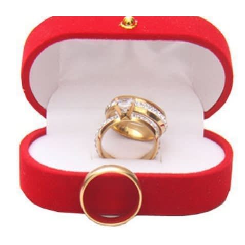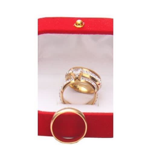 Adorn yourself or your significant other with this masterfully crafted Gold plated Wedding ring set, ornamented with a beautiful and shimmering Square cubic zirconia Crystal. Excellent for engagement/wedding, anniversaries, party and as a special gift.