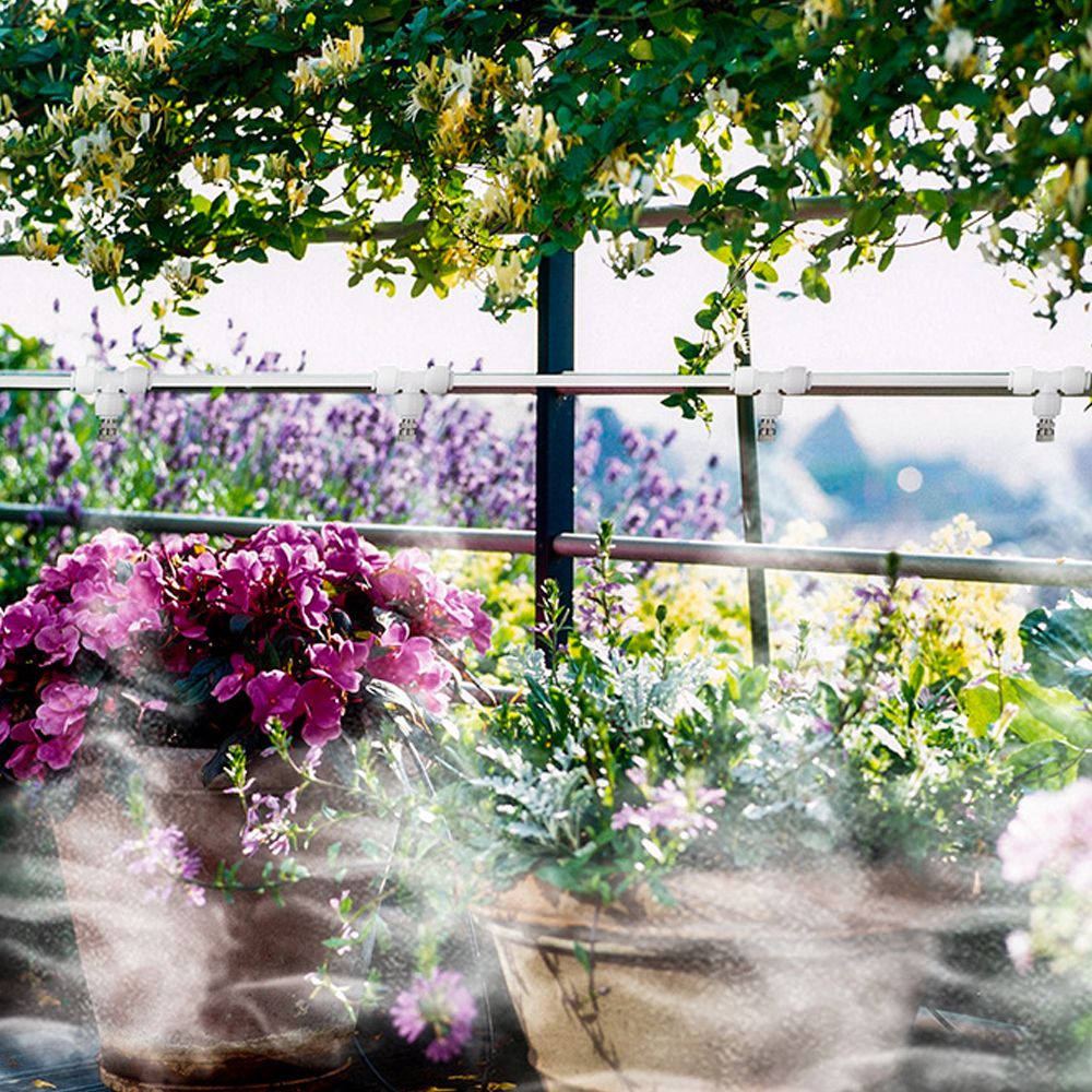 Wide Application: This misting system can be widely used for your garden, greenhouse, patio to cool the air and irrigate plants, also can be used as an outdoor cooling system for the water park, etc.