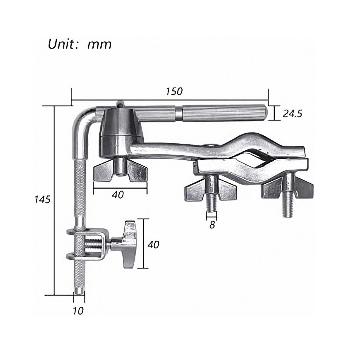 58 inch to 1 14 inch multi clamp with adjustable L rod the round bar can be rotates so you can adjust it to the angle