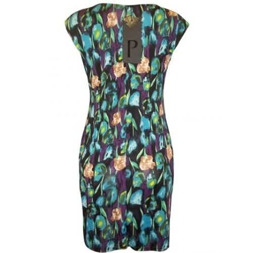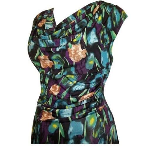 Buy Cowl Neck Feature Pleat Side Tulip Print Drape Dress in Nigeria