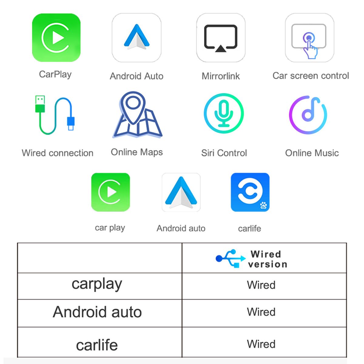 Bidirectional control and view your phone on the car navigation screen with USB cable. Compatible with all Android 5.1 or above amp; iOS 7.1 and above.