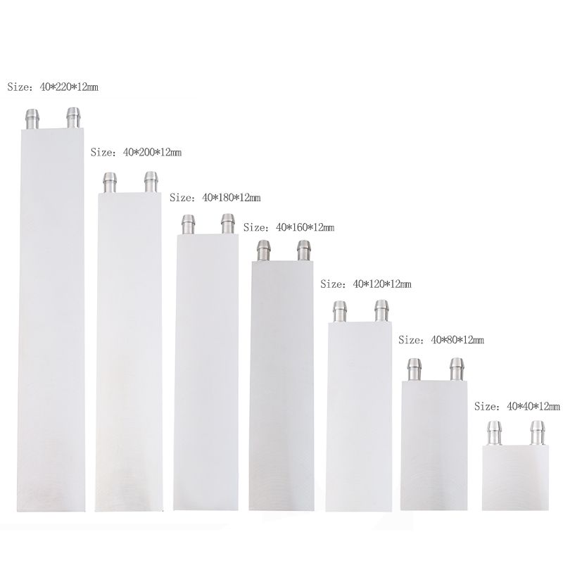 Specifications: Material : Aluminum Color : Silver Polishing : Yes Heat diipation method: the liquid conducts the cold and heat exchange. Size: 30x30mm, 40x40mm, 40x80mm, 40x120mm, Features Brazing parts into a whole Internal flow channel extrusion forming Can be connected with internal diameter 7-8mm/0.27-0.31'' water Solid construction, aluminum material is a good choice for heat diipation Applicable to computer CPU water, industrial inverter driver, laser head cooling, industrial control cabinet cooling Package included: 1 Pcs Cooling Block Notice: Please allow 1-3cm error due to manual measurement and make sure you do not mind before ordering. Please understand that colors may exist chromatic aberration as the different placement of pictures.
