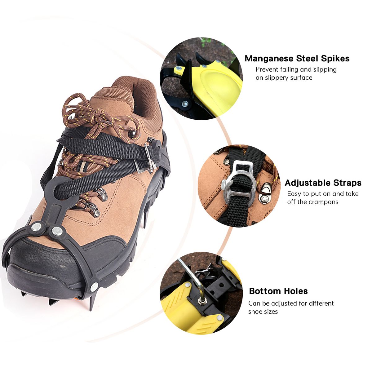 If you\';ve had trouble walking on the road during snow season before, that means your shoes need to be equipped with crampons. With several spikes, it can help you walk on ice safely. It is a solid choice to support your adventures even in winter.